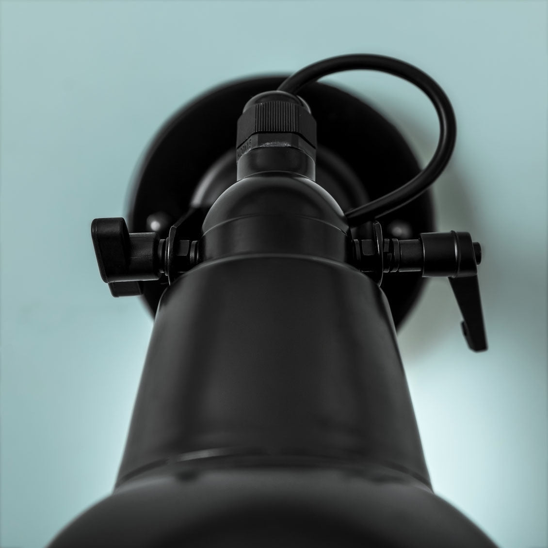 Fabriquée en métal noir et conforme aux normes CE, cette lampe murale assure sécurité et qualité. Compatible avec les ampoules E27 jusqu'à 40W (non incluses), elle permet de personnaliser la luminosité selon vos préférences, créant ainsi une ambiance chaleureuse et accueillante.