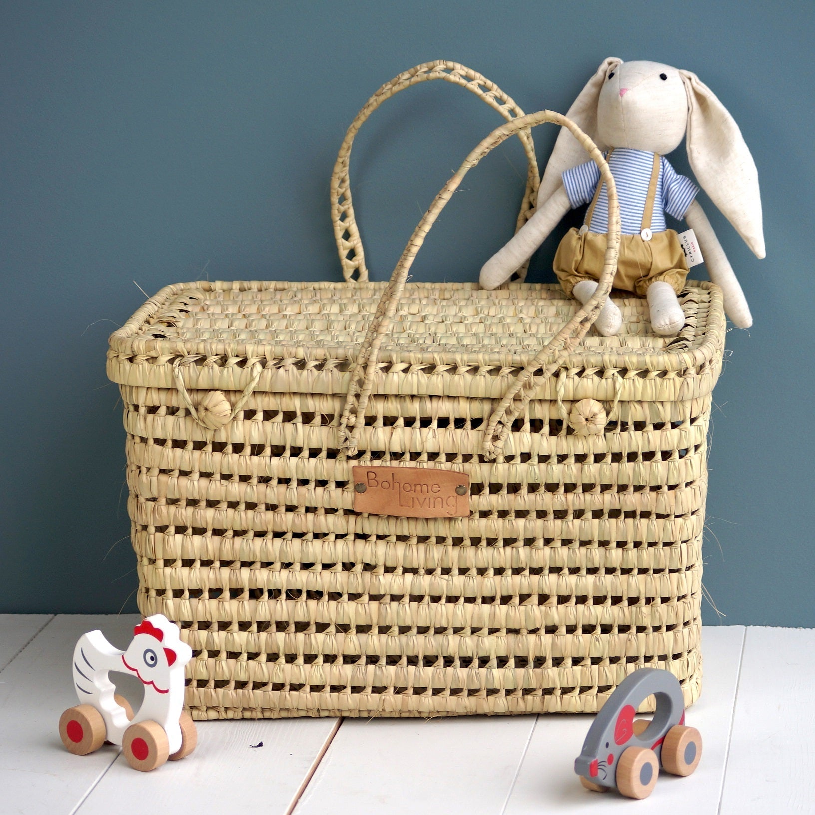 La "Malle de rangement en feuilles de palmier 45cm" est l'accessoire idéal pour ajouter une touche naturelle et bohème à votre intérieur. Fabriquée à la main au Maroc, chaque pièce est unique avec des variations subtiles qui ajoutent du caractère.